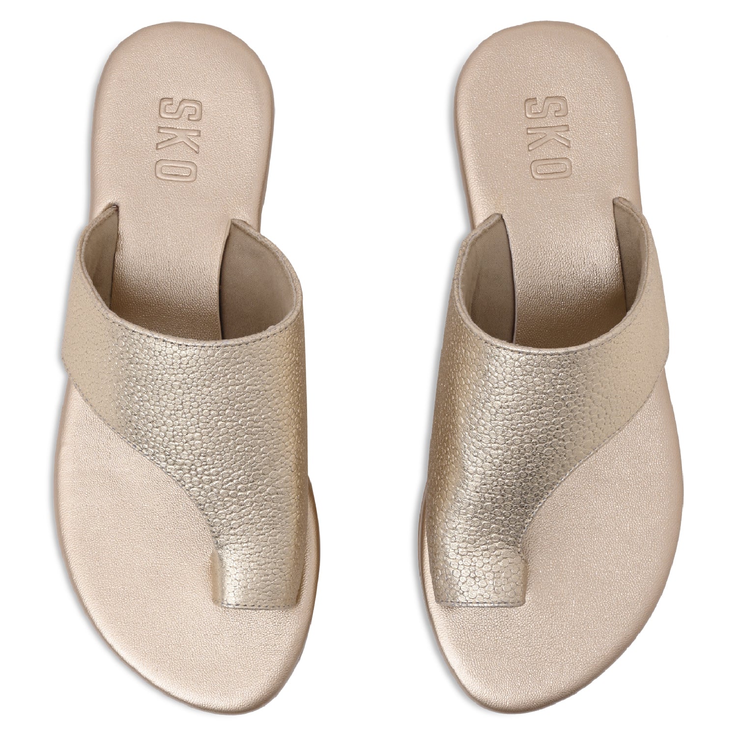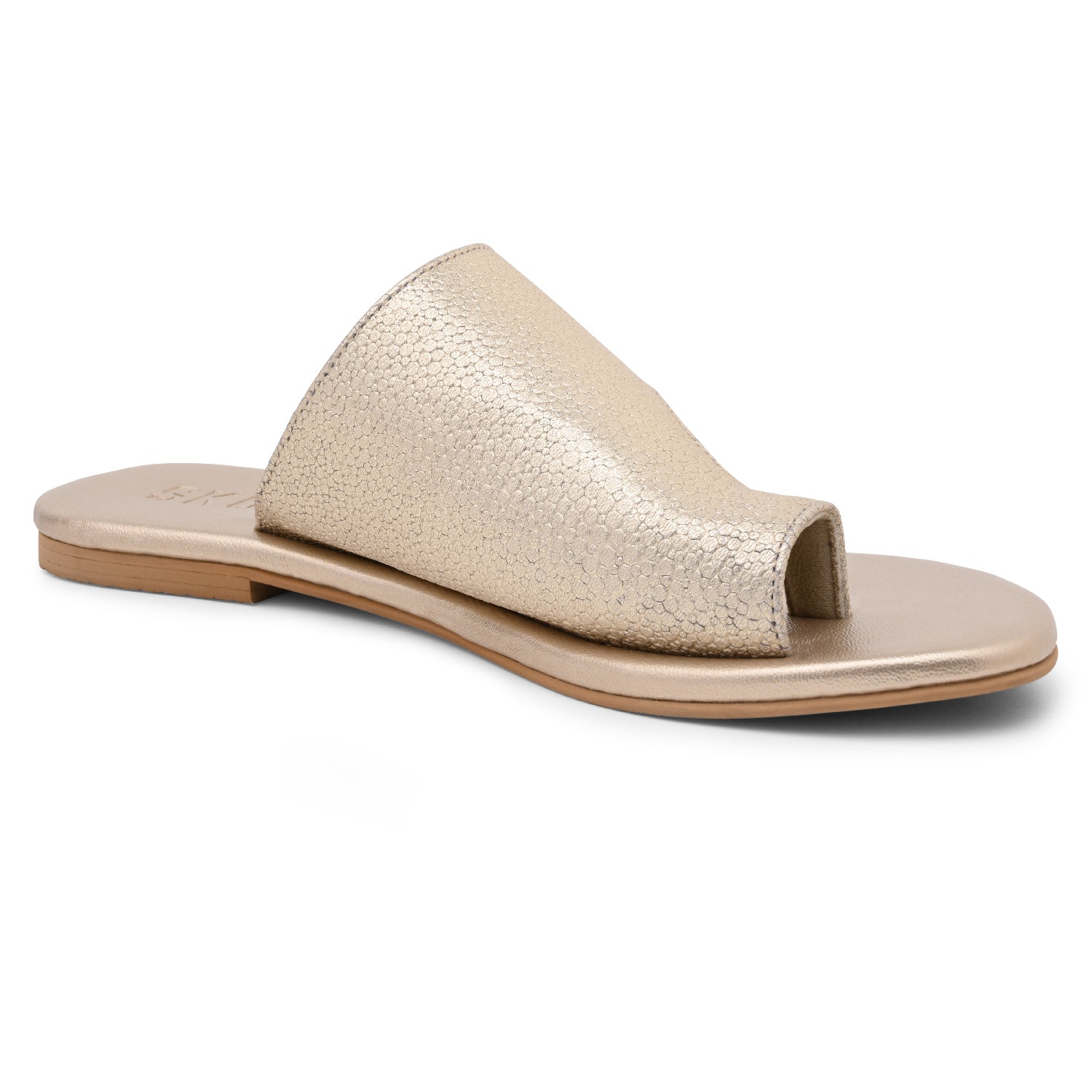 Simple and elegant, this is Amalfi in Gold. The open-toe, flat slip-on is relaxing to wear for long stretches of the day and perfect for the summer. Play up your ensemble with some semi-formals and your blue denims.